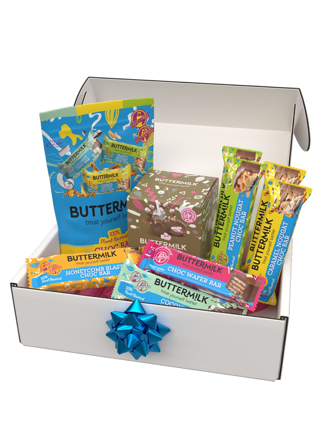 Want to give our plant-powered treats a taste? Our Taster Box is a variety pack full of our best selling choccy goodies. Perfect to treat yourself or a friend.
